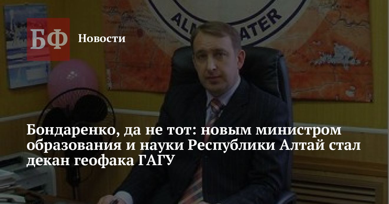 Бондаренко, да не тот: новым министром образования и науки Республики Алтай стал декан геофака ГАГУ