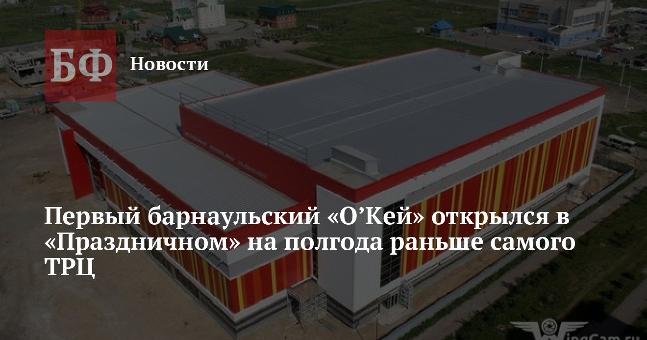 3 декабря в барнаульском ТРЦ «Праздничный» (реализацией проекта занимается ФПГ «АлтайЭкспрессЦентр» — прим. ред. «БФ») открылся первый в Алтайском крае магазин федерального ритейлера «О'Кей», информация размещена на офсайте компании. Алтайский край стал 26-м регионом присутствия розничной сети.