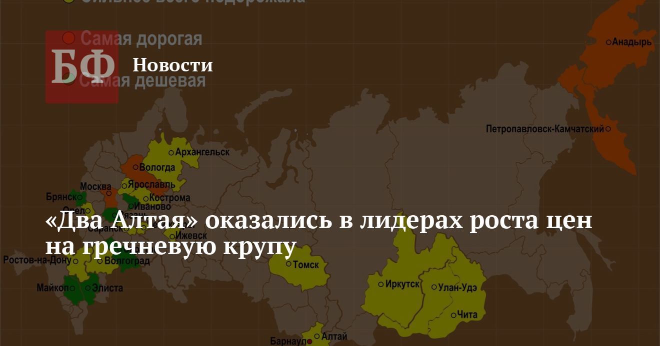 Гречка в Алтайском крае и Республике Алтай подорожала более чем в два раза с начала ноября. Несмотря на то, что регион считается «гречневой столицей» России, дороже чем в Барнауле крупу можно найти лишь в пяти городах страны, один из которых — Горно-Алтайск, следует из рейтинга, опубликованного сайтом agro2b.ru.