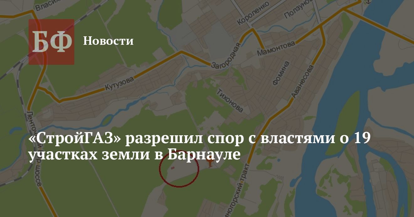 Компания «СтройГАЗ» выиграла дело по иску к Главному управлению имущественных отношений Алтайского края. Оно касалось регистрации права собственности на 19 земельных участков, где в настоящий момент уже развернулась стройка. Ведомство в течение 20 дней обязано оформить землю в собственность региона, благодаря чему «СтройГАЗ» на законных основаниях сможет продолжить строительство как арендатор, следует из документов суда.