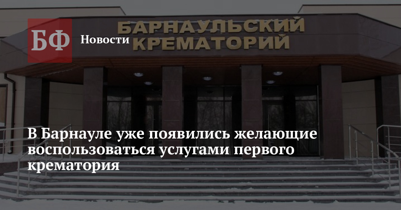 Первый крематорий в Барнауле на проспекте Космонавтов, 64, сроки открытия которого неоднократно корректировались, наконец запустят в I квартале 2015 года. Эта информация опубликована на офсайте заведения, где также размещены фотографии готового объекта. По словам представителя организации, заявки уже поступают.
