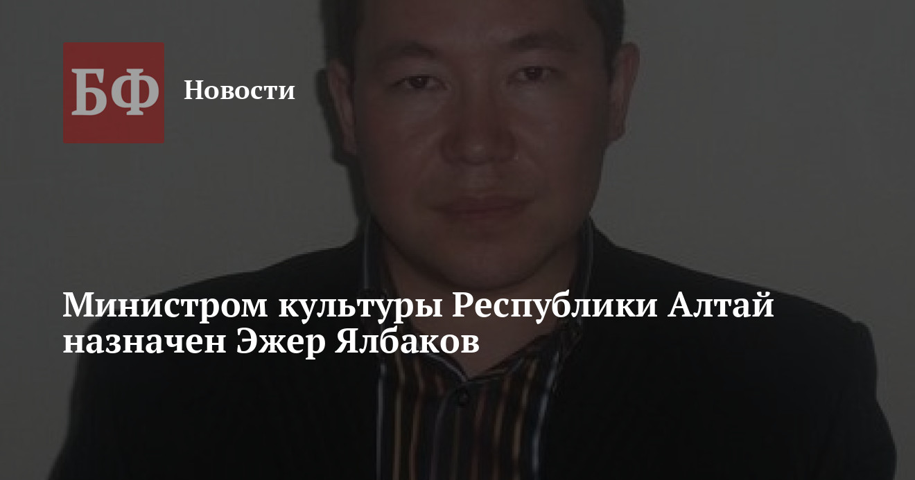 2 февраля глава Республики Алтай Александр Бердников подписал указ о назначении Эжера Ялбакова на должность министра культуры региона, который с октября прошлого года был исполняющим обязанности на этом посту. Такой информацией поделились «Новости Горного Алтая».