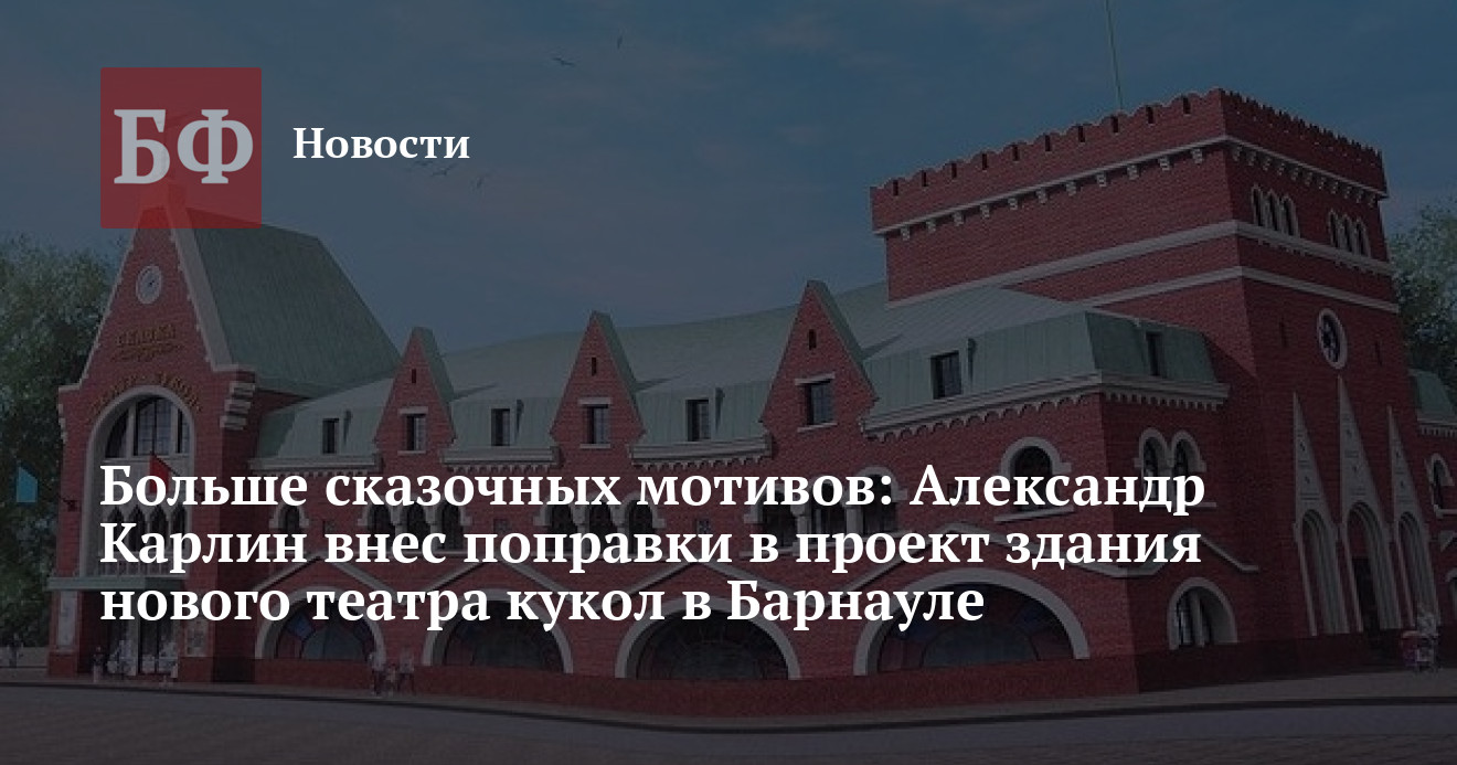 Стоит отметить, что в середине ноября прошлого гола в прямом эфире передачи «Давыдов. Индекс» на телеканале РБК-ТВ глава региона заявил о том, что на завершение всех работ по возведению новостроя понадобится порядка 3−4 лет. Общая сумма инвестиций в проект г-м Карлиным при этом названа не была. Напомним, что реконструкция здания театра была предусмотрена концепцией «Барнаул — культурная столица юга Сибири» на 2012−2017 годы. Однако осенью 2013 года региональное управление по культуре и архивному делу заявило, что на участке должно появиться новое здание. При этом эскизный проект нового здания театра «Сказка» был подготовлен еще в 2011 году архитектурно-строительным бюро ООО «АРТ-ДЕКО». Стоимость контракта составляла 1,97 млн рублей.