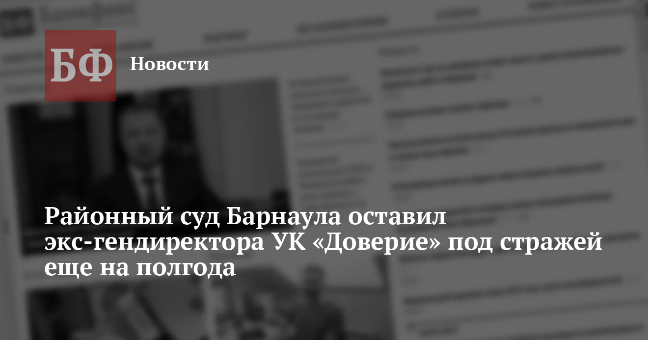 Центральный районный суд Барнаула продлил на полгода меру пресечения в виде содержания под стражей для экс-гендиректора УК «Доверие» Дениса Сучкова, обвиняемого в мошенничестве в особо крупном размере. Уже в ближайшее время начнется рассмотрение дела по существу, сообщил ИА «Банкфакс» помощник судьи Евгений Горецкий.