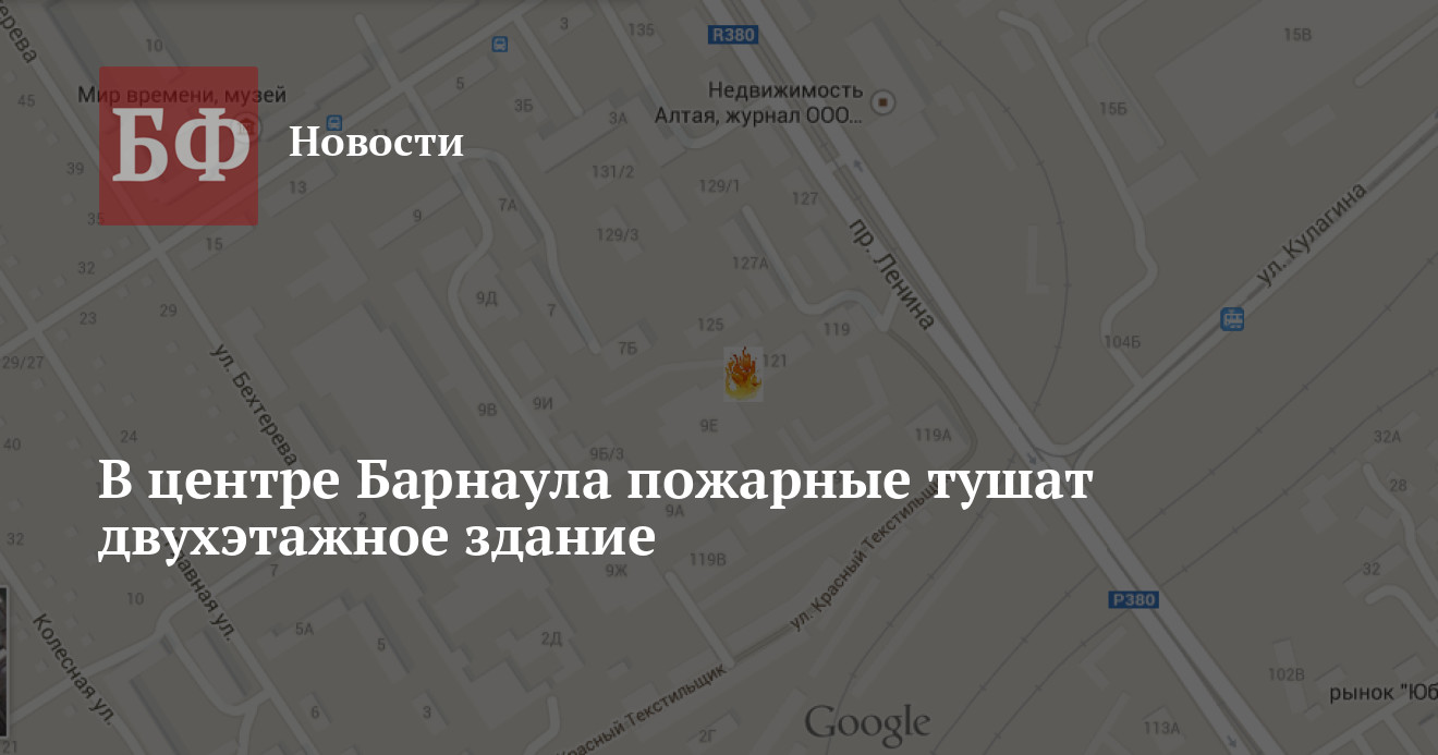 В пресс-службе ГУ МЧС России по Алтайскому краю ИА «Банкфакс» подтвердили факт возгорания, заявив, что пожар произошел в двухэтажном неэксплуатируемом здании по адресу проспект Ленина, 121. В настоящее время спасатели находятся на месте происшествия и занимаются тушением пожара. В управлении пока не смогли уточнить, сколько человек и единиц техники задействовано в устранении огня, какой урон был нанесен сооружению и есть ли пострадавшие.