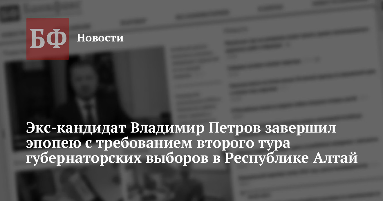 4 марта Верховный суд России отказал в удовлетворении апелляционной жалобы экс-кандидату на пост главы Республики Алтай Владимиру Петрову, пытавшемуся оспорить итоги выборов и провести второй тур. Высшая инстанция оставила в силе решение Верховного суда республики, не нашедшего оснований для отмены итогов голосования, сообщают «Новости Горного Алтая» (НГА).