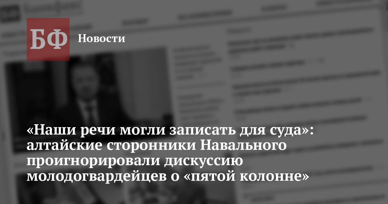 Алтайское реготделение «Партии прогресса» не получало официального приглашения на инициированную «Молодой гвардией «Единой России» (МГЕР) дискуссию «Технологии «цветных революций» и «пятая колонна», хотя МГЕР официально заявила об обратном. Однако даже если бы сторонников Алексея Навального пригласили, они ответили бы отказом, так как считают участие в подобных мероприятиях бессмысленным и даже опасным, рассказала ИА «Банкфакс» лидер реготделения «Партии прогресса» Ольга Фотиева.