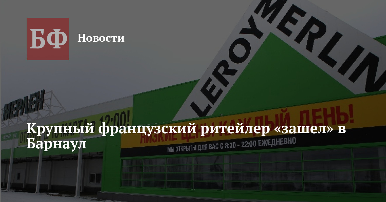 18 марта в Барнауле открылся первый гипермаркет строительных материалов французской торговой сети Leroy Merlin. Информация представлена на офсайте ритейлера. Здание по адресу Павловский тракт, 192а находится в непосредственной близости от ТРЦ «Арена», частично запущенного в конце 2014 года.