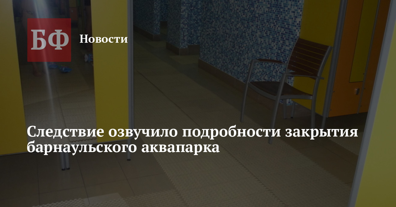 По словам г-на Долгалева, работа барнаульского аквапарка была приостановлена не только по требованию следственного управления, но и из-за претензий Роспотребнадзора. Медицинский кабинет в заведении не был лицензирован, что является грубым нарушением. При этом пользователи форума «Материнство» утверждают, что таковой в здании отсутствует вовсе.