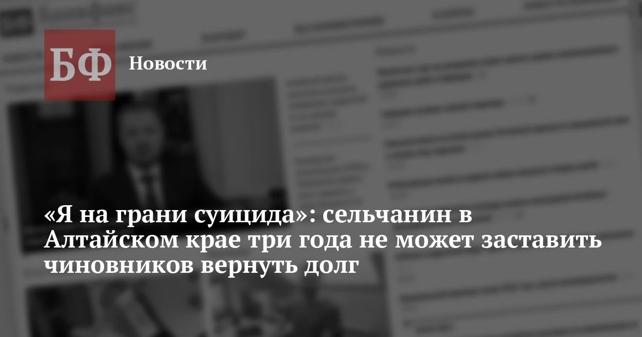 Житель Масальского сельсовета Локтевского района Алексей Устьянцев намерен объявить голодовку в стенах администрации Алтайского края, чтобы добиться от властей внимания к беспрецедентному поведению чиновников родного муниципалитета. Они уже три года отказываются вернуть ему долг в размере 311 тысяч рублей (первоначально он заявлял к взысканию более 1 млн рублей), при этом оказывая, как он говорит, серьезное психологическое давление, из-за которого мужчина находится на грани самоубийства. Об этом ИА «Банкфакс» рассказал сам г-н Устьянцев.