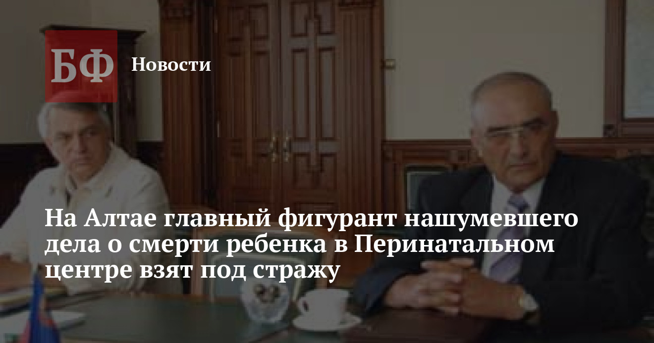 Главврач Перинатального центра Республики Алтай Анатолий Демчук, который был задержан в минувшие выходные из-за гибели в роддоме новорожденного ребенка, арестован на один месяц. Об этом со ссылкой на региональный СУ СКР пишет портал «Новости Горного Алтая».