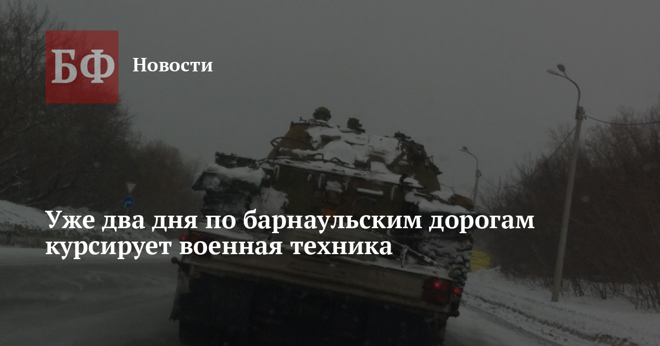 Как утверждают местные жители, 2 апреля вечером на Змеиногорском тракте в направлении центра города передвигался бронетранспортер. Кроме того, накануне там же перевозили танк. Некоторые участники обсуждения сошлись на том, что техника возвращалась с полевых учений, однако выразили опасения по поводу качества барнаульских дорог после подобных «автопробегов». Также барнаульцы добавили, что 1 апреля около 12:30 в районе бывшего кинотеатра «Алтай» проехало шесть БТРов и четыре «КамАЗа» с военными, которые направлялись в сторону поселка Южный. Между тем администрация города никаких объявлений о возможном проведении боевых учений не делала.
