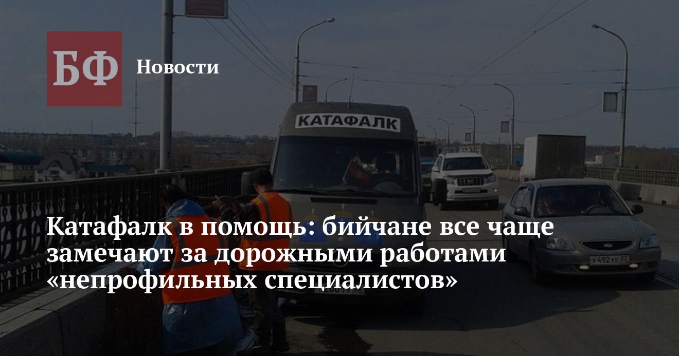 Как отмечают пользователи «ВКонтакте», дорожные работы на мосту через Бию специалисты на похоронном автомобиле ведут уже неделю, создавая при этом серьезную пробку. Как видно на фотографии от 20 апреля, они занимаются покраской ограждений.