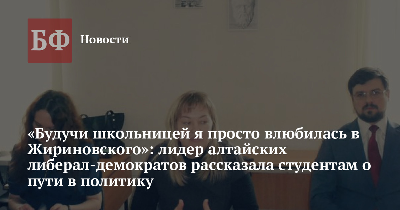 Инициатива проведения мероприятия принадлежала студентам кафедры политологии АлтГУ. Судя по отчету с круглого стола, координатор Алтайского реготделения ЛДПР поделилилась подробностями своего пути в «большую» политику. «Будучи еще школьницей я просто влюбилась во Владимира Жириновского. Его уважал мой дедушка, и мы вместе смотрели выступления лидера ЛДПР. Еще Машу Распутину он любил, но, слава богу, к ней никаких чувств не возникло», — неожиданно призналась Евгения Боровикова.