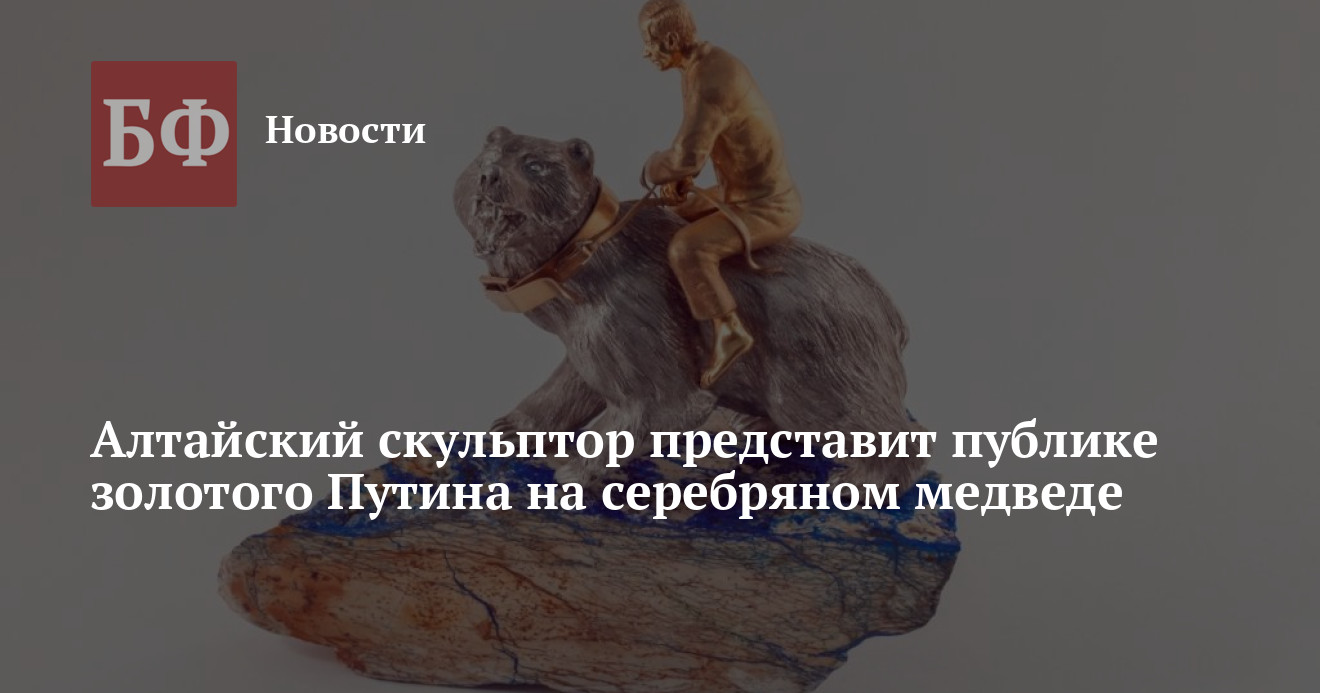 Алтайский скульптор Владимир Войчишин изготовил статуэтку золотого Владимира Путина верхом на серебряном медведе. Впервые он представил ее на годовщину воссоединения Крыма с Россией, а в начале июня планирует разместить в составе своей новой экспозиции в галерее «Простор» на «Бирюзовой Катуни». Скульптура называется «Медведь своей тайги не отдаст», рассказал ИА «Банкфакс» сам г-н Войчишин.