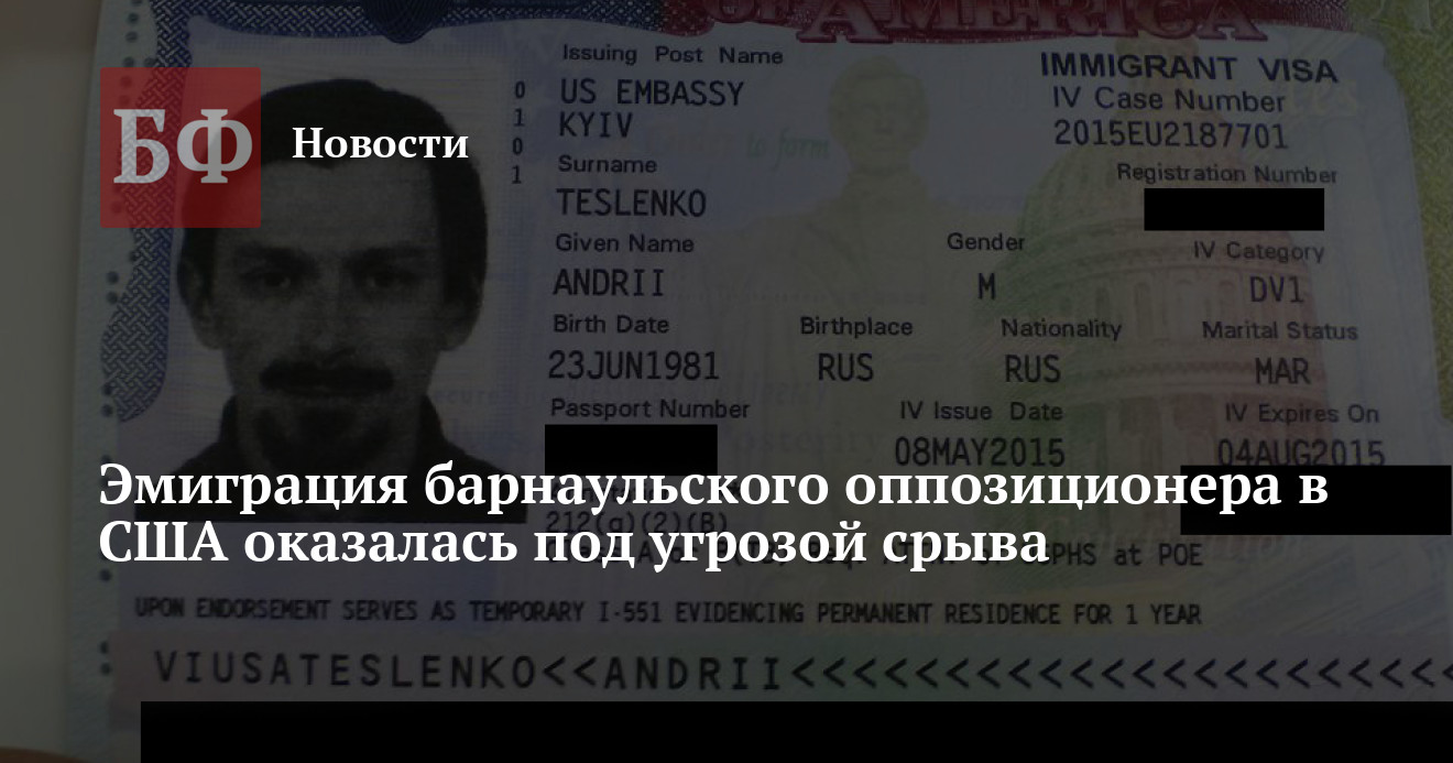 Напомним, срок действия иммигрантской визы Андрея Тесленко истекает в начале августа 2015 года. Именно до этого времени ему необходимо попасть на территорию США, иначе эмиграция окажется под большим вопросом.