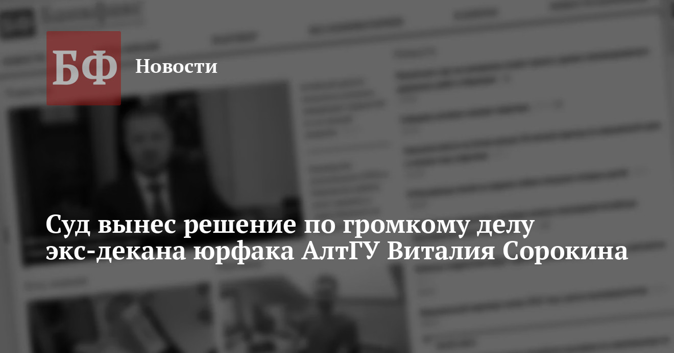 Интересно, что наказание, которое вынес районный суд, предполагает, что г-н Сорокин имеет полное право в соответствии с законодательством восстановиться на всех своих прежних должностях. На данный момент профессор отстранен от должности декана юрфака и лишен остальных ставок в АлтГУ.