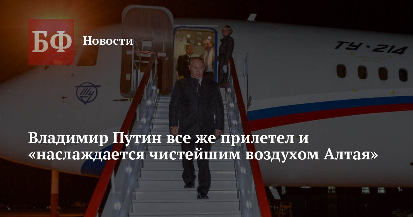 Как пишет издание FlashSiberia со ссылкой на источник в правительстве Республики Алтай, президент проводит выходные на своей даче. «Президент с пятницы отдыхает у нас — наслаждается чистейшим воздухом», — сказала собеседница агентства. Информацию косвенно подтвердили и «Новости Горного Алтая», по данным которых в местном аэропорту совершил посадку Ту-214 специального летного отряда «Россия», который примерно за час до этого вылетел из Абакана. Одновременно с этим над городом несколько десятков минут кружил еще один самолет специального летного отряда Ту-214СР — самолет-ретранслятор, сопровождающий главу государства и обеспечивающий его связь.