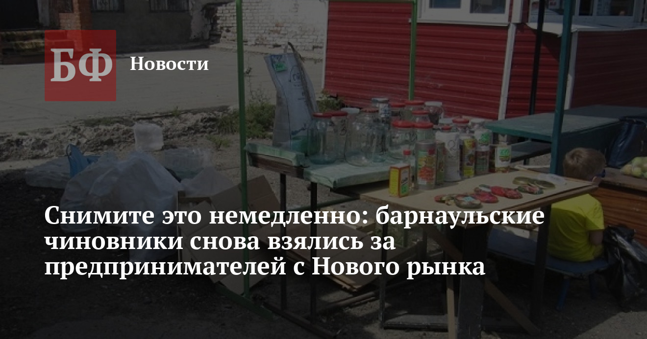 Представителям мелкого бизнеса с Нового рынка поставлен очередной ультиматум от чиновников. На этот раз городские власти не устроил внешний вид и благоустройство как на самом рынке «Юбилейный», так и в его окрестностях, сообщает офсайт администрации Барнаула.