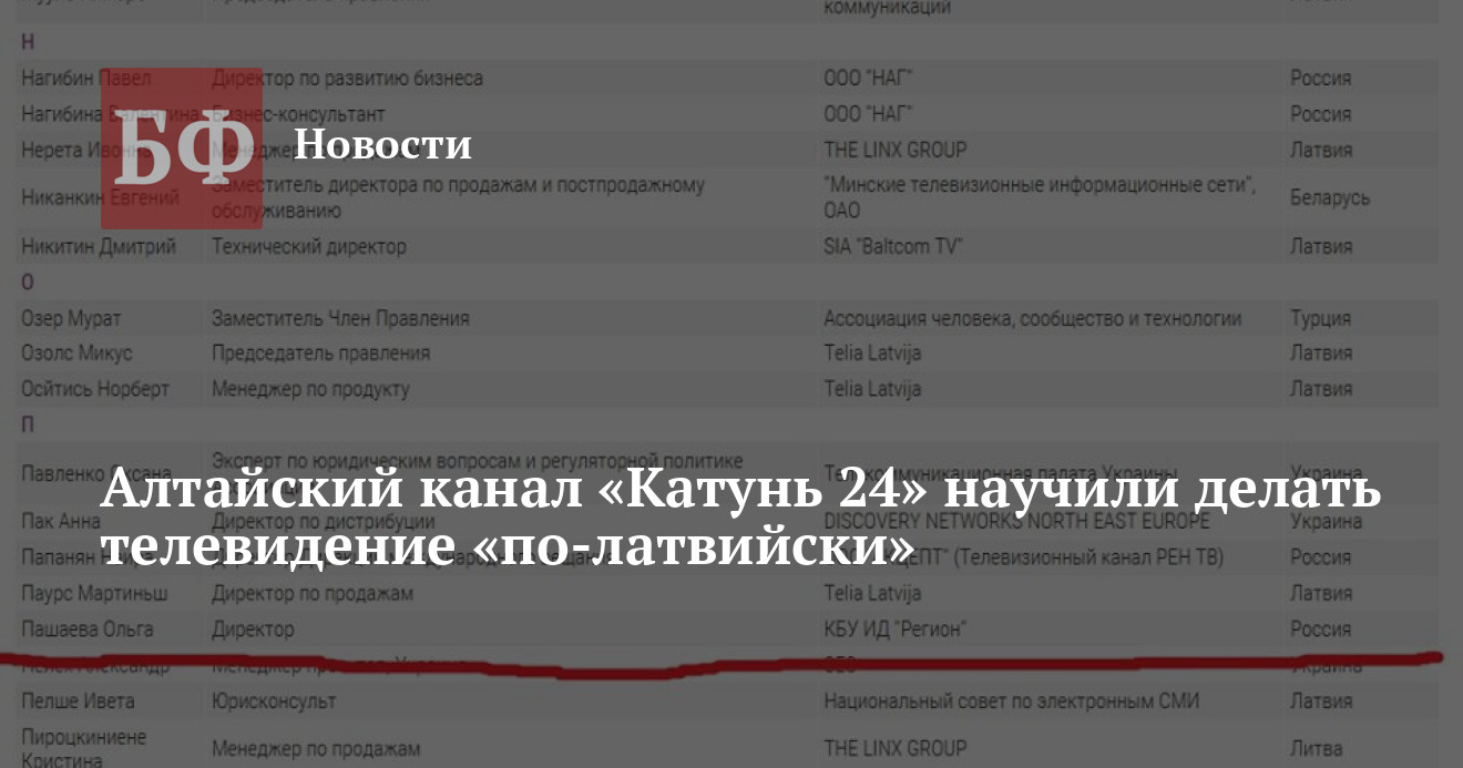 Директор издательского дома «Регион» Ольга Пашаева и главный редактор входящего в его структуру телеканала «Катунь 24» Оксана Кравчук провели середину августа в гостеприимной столице Латвии. С 10 по 13 августа они набирались опыта у коллег из Прибалтики, Украины, Польши, Нидерландов, Британии и других стран Европы в рамках пятой Международной телекоммуникационной конференции и выставки Telco Trends 2015. Об этом свидетельствуют список участников мероприятия и метки в соцсетях руководства ИД «Регион».