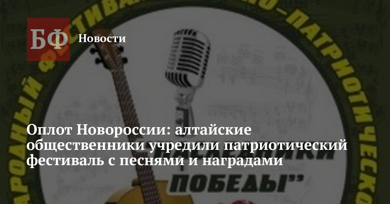 26 сентября на Алтае стартует первый народный фестиваль патриотической песни «Славянский аккорд — оплот Новороссии!», информация размещена на портале lawinrussia.ru.