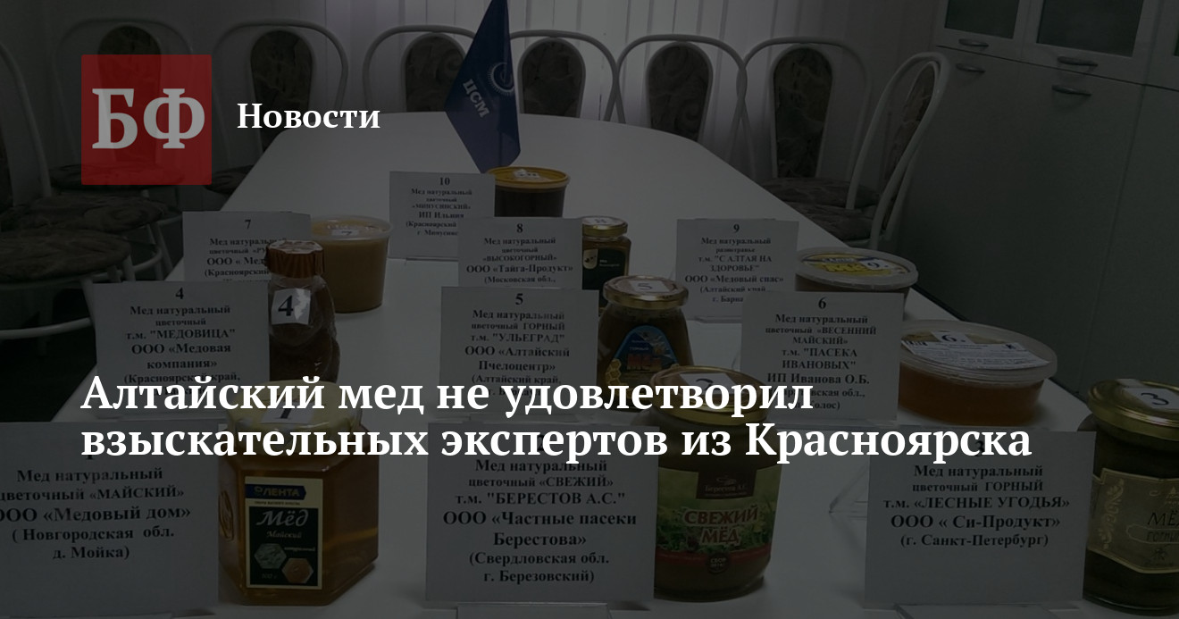 Эксперты красноярского Центра стандартизации и метрологии (ЦСМ) не слишком высоко оценили потребительские качества меда из Алтайского края. Один из образцов занял последнее место в рейтинге, другой — третье с конца. При этом мед из Республики Алтай понравился специалистам — они поставили его на второе место. Об этом сказано на сайте ЦСМ.