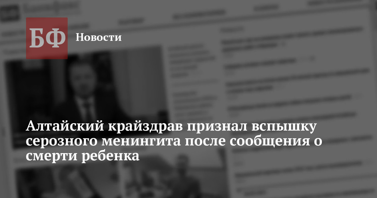 Главное управление Алтайского края по здравоохранению и фармацевтической деятельности признало, что с середины августа в регионе отмечается «сезонный подъем заболеваемости энтеровирусной инфекцией, в том числе серозными менингитами». В регионе введен режим карантина. Примечательно, что сообщение появилось на сайте ведомства вечером 2 октября, после того, как тревогу в Интернете начала бить мать первого погибшего ребенка. Между тем, крайздрав не признает наличия больных с тяжелой клиникой.