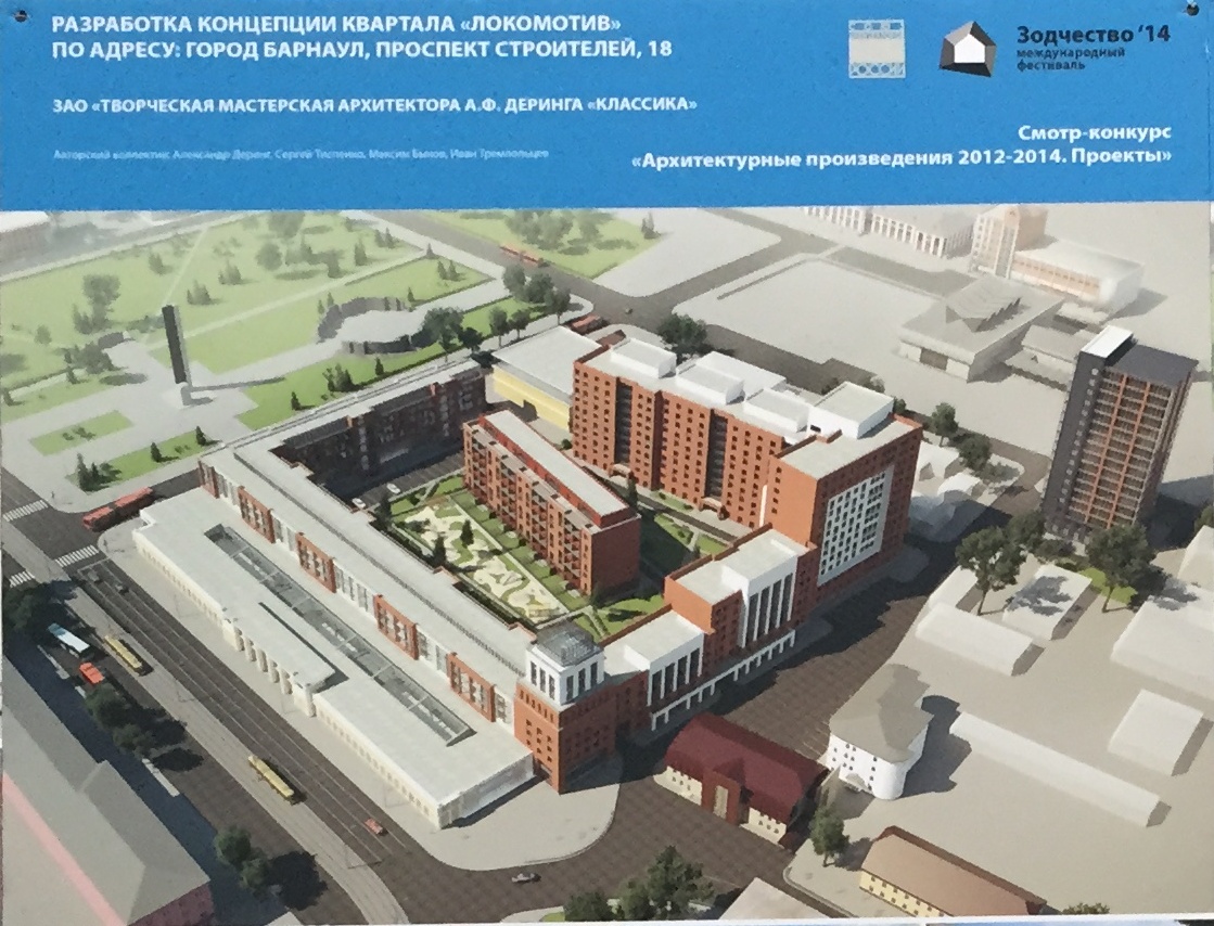 Проект жилого квартала «Локомотив», который будет возведен на месте одноименного стадиона, стал лауреатом международного фестиваля «Зодчество — 2014», проходившего 20-21 декабря в Москве. Разработкой концепции занимались архитекторы Александр Деринг и Сергей Тисленко. На территории бывшего спортобъекта будут построены жилые дома высотой от 5 до 16 этажей с парковкой. В отреставрированной части проспекта Строителей появится торговая пешеходная галерея. Поскольку «Локомотив» носит статус памятника культуры, фасад стадиона снесен не будет. Между тем, как стало известно в начале года, застройщик уже договорился о подключении к электросетям, а также решил вопрос с газоснабжением. В частности, для жилкомплекса планируется построить собственную газовую котельную.