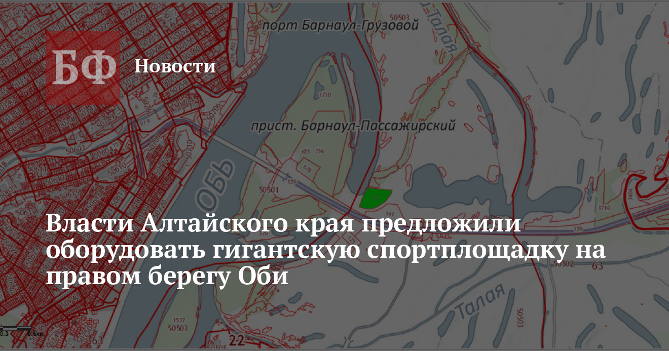 Фонд имущества Алтайского края назначил на 8 декабря аукцион по продаже земельного участка, на котором разрешено построить спортивную площадку. При этом, судя по описанию земли, объект будет масштабным — под него подготовлена площадь почти в 5,5 га, сказано на сайте Фонда.