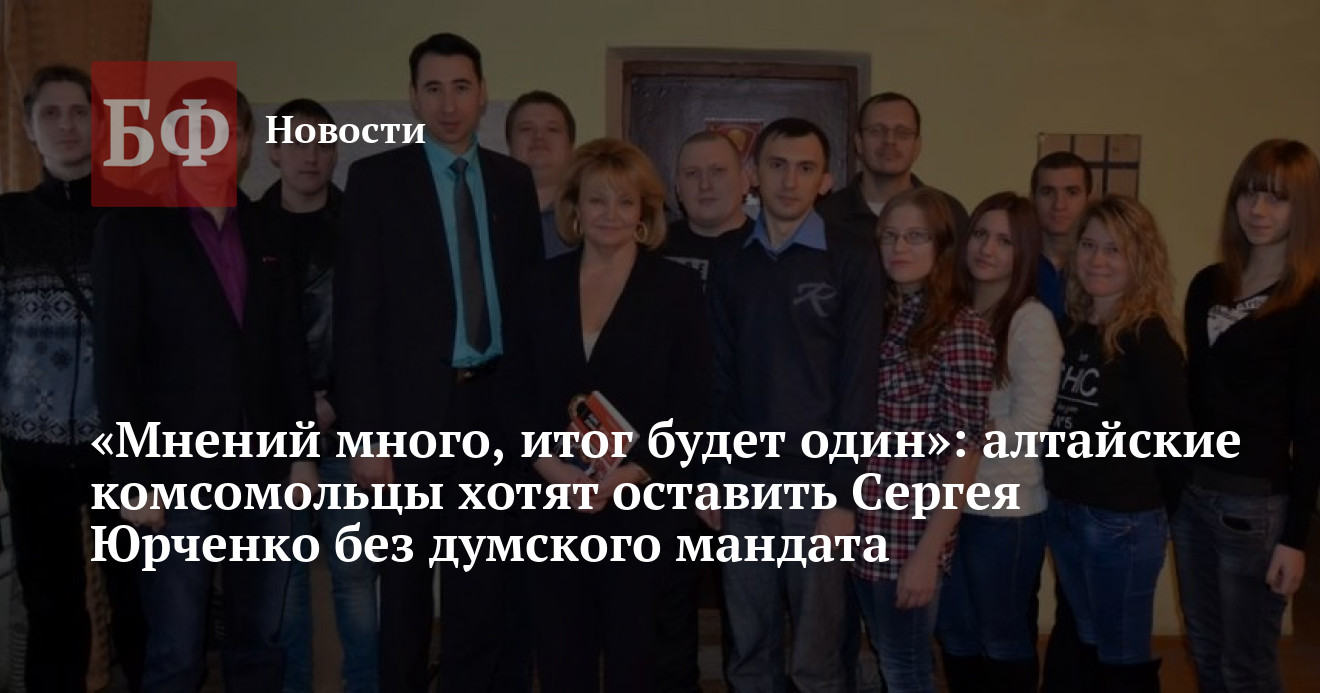 Он уточнил, что большинство комсомольцев также выработали позицию по Сергею Юрченко. Он, по их мнению, не должен быть депутатом Госдумы следующего созыва. «Сергей Иванович — первый секретарь крайкома и должен работать в этой должности. Руководить местным отделением партии нужно не из Москвы, а из Барнаула. У КПРФ в Алтайском крае много задач, которые нужно решать», — сказал г-н Наздрачев.