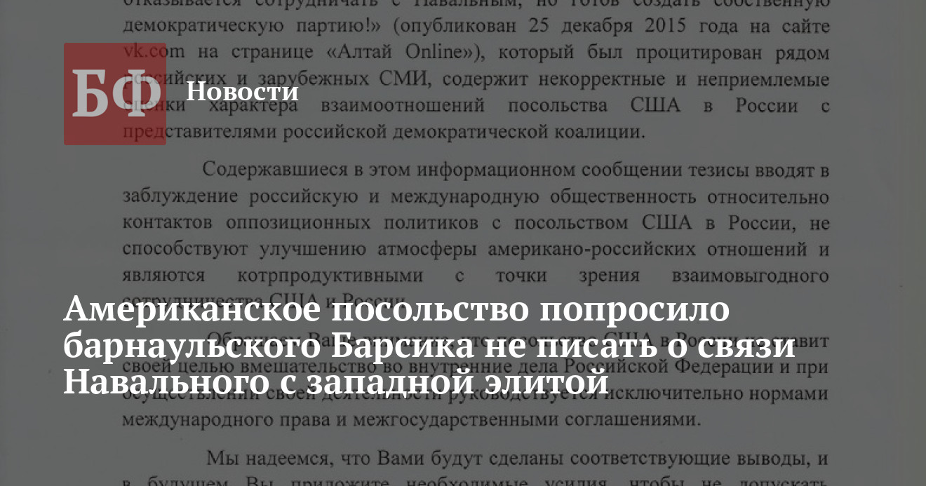 Именно на это сообщение, которое распространилось в СМИ, отреагировал американский посол. Он «с сожалением констатирует», что пост «содержит некорректные и неприемлемые оценки характера взаимоотношений посольства США в России с представителями российской демократической коалиции».