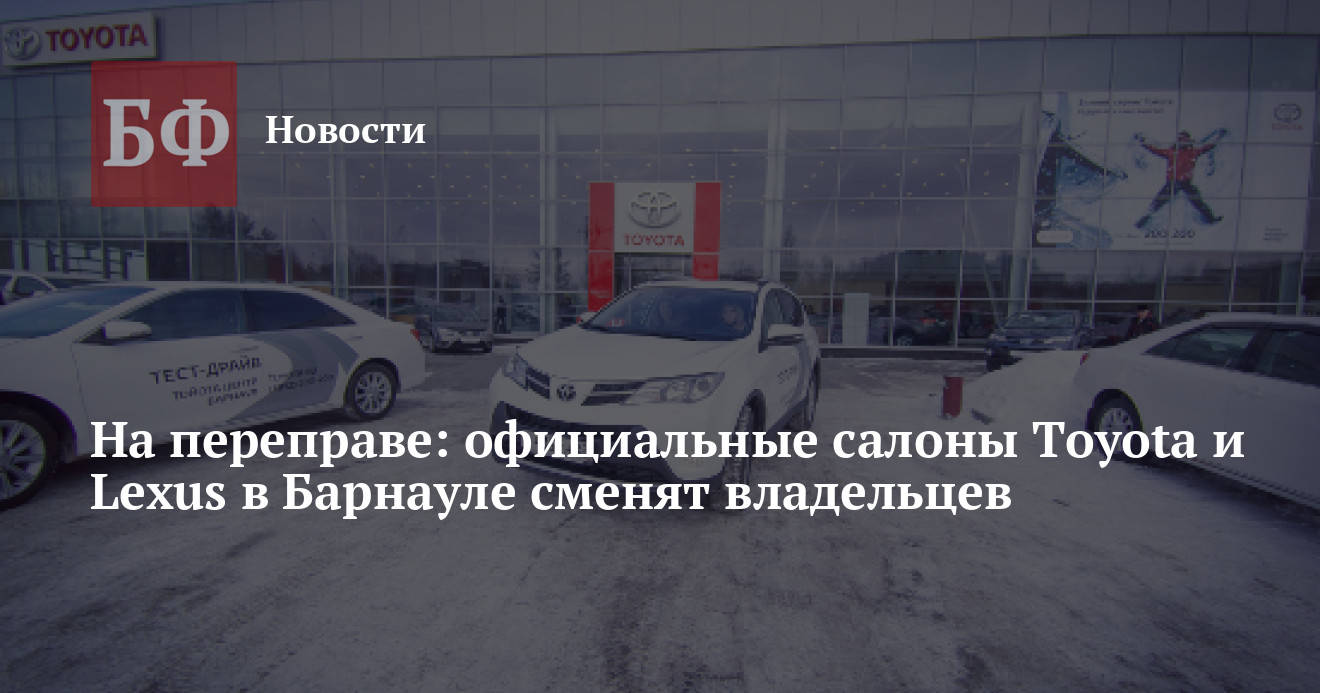 По непроверенным данным, новым официальным дилером Toyota и Lexus в Новосибирске и Барнауле с 16 февраля 2016 года может стать московская компания «СП Бизнес Кар». В ООО «Тойота Мотор» не подтверждают и не опровергают эту информацию. «Что касается возможности открытия нового партнера: продолжим внимательно следить за развитием автомобильного рынка Барнауле и Новосибирске наряду с остальными регионами России», — пояснила Наталья Астафьева. В самой «СП Бизнес Кар» получить комментарии не удалось.