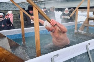 19 января жители Алтайского края, несмотря на сильный мороз, окунаются в купели, отмечая Крещение.