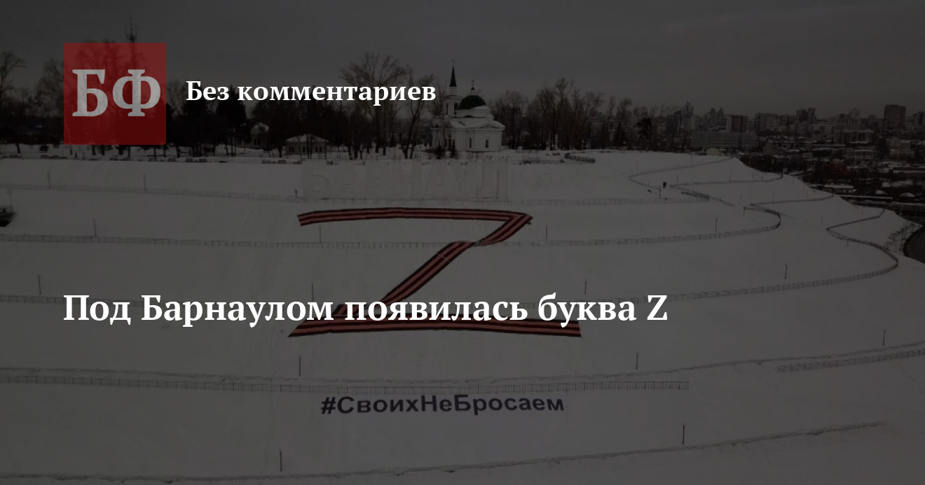 Барнаул присоединился к флешмобу в поддержку Вооруженных Сил РФ, которые проводят специальную военную операцию по денацификации и демилитаризации, защите мирного населения Донбасса, обеспечению безопасности России на территории признанных ЛДНР и Украины. В Нагорном парке под буквами «Барнаул» появилась латинская буква Z, которая наносится на отечественную армейскую технику и стала символом событий последних дней. Литера выложена из Георгиевских лент. Под ней разместили хэштег #СвоихНеБросаем. Судя по опубликованным кадрам, в мероприятии поучаствовали горожане, в том числе бойцы детско-юношеского военно-патриотического движения Юнармия и другие активисты. Ранее Минобороны РФ в своем Instagram пояснило, что Z значит «За победой», а V — «Сила в правде» и «Задача будет выполнена». До этого в СМИ звучали различные предположения о значении этих знаков, а действия ВС РФ прозвали «операцией Z».