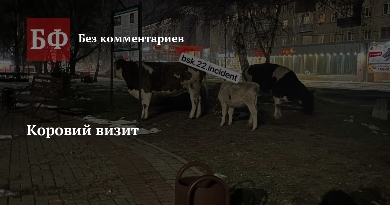 Жители Бийска заметили в центре заснеженного города несколько коров без владельца. Выяснилось, что стадо гуляло само по себе около суток. 10 ноября они пришли в сад рядом с городской мэрией, где задержались, что вызвало у комментаторов обсуждения в юмористическом ключе. Позднее в соцсетях появилось сообщение, что животные все-таки имеют хозяина, который потерял их два дня назад. Однако сами коровы в итоге куда-то запропастились — теперь тех, кому известно их местоположение, просят сообщить владельцу.