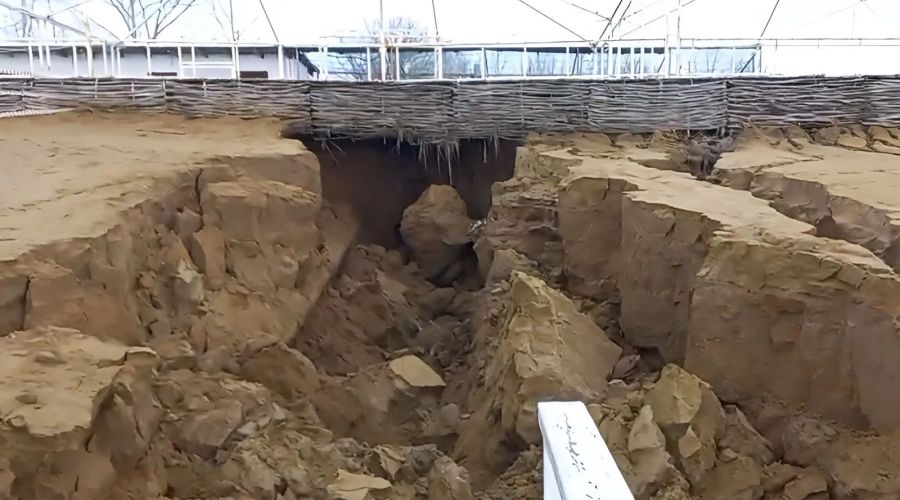 На одном из пляжей Ярового произошел обвал грунта. По словам очевидцев, глубина «разлома» составляет несколько метров. Это случилось, предположительно, из-за подтопления территории талыми водами. Судя по кадрам в соцсетях, грунт частично вымыло из-под огороженной территории, где расположены аттракционы. В соцсетях пишут, что якобы существует опасность обрушения неких металлоконструкций. Вместе с этим тонны песка унесло в озеро, где образовался остров.