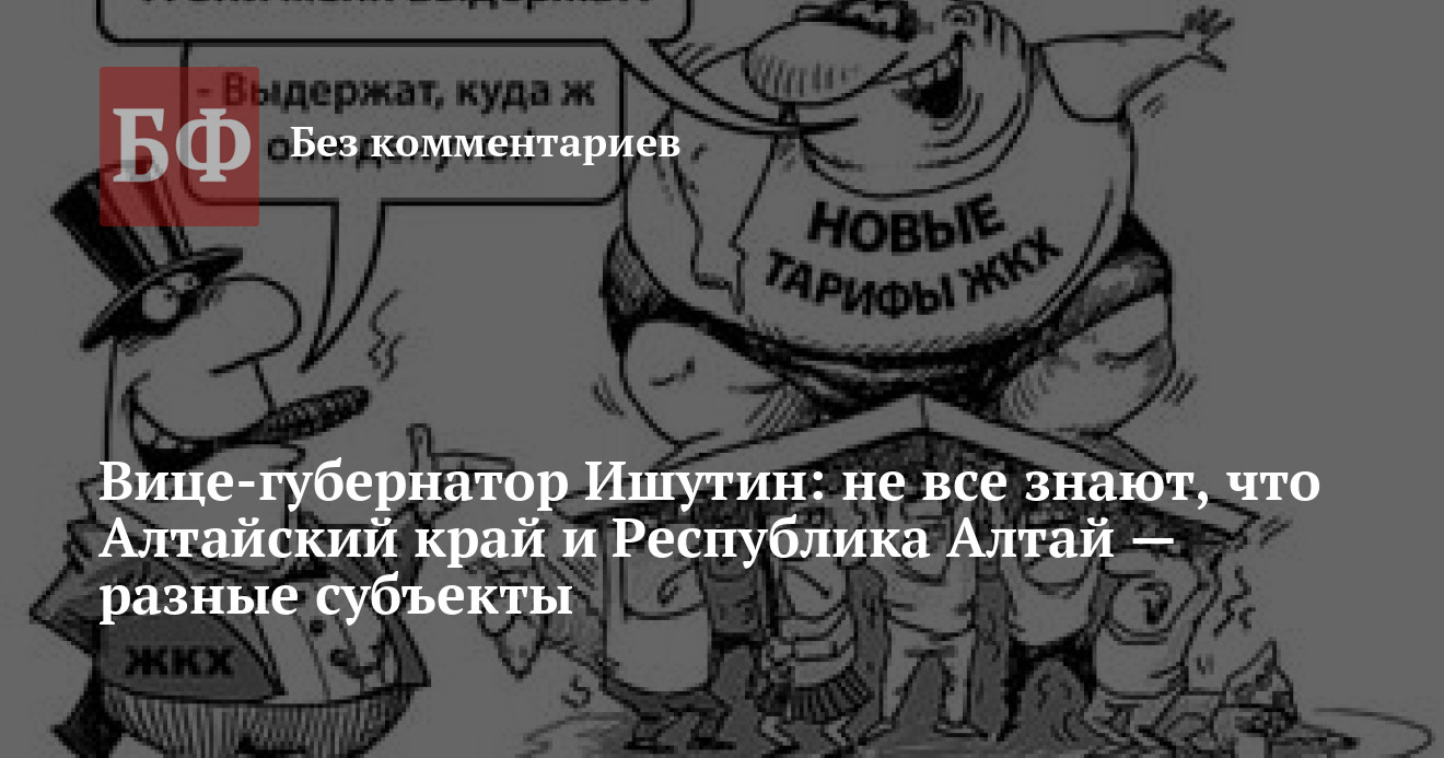 Заместитель губернатора Алтайского края Яков Ишутин прокомментировал скандал вокруг мнимого роста тарифов на ЖКУ в Республике Алтай, закончившийся отставкой республиканского министра регионального развития Юрия Сорокина и руководителя комитета по тарифам Сергея Романова. По неофициальным данным, при подготовке справочных документов о текущей ситуации в ЖКХ для правительства РФ горно-алтайские чиновники попросту перепутали цифры.