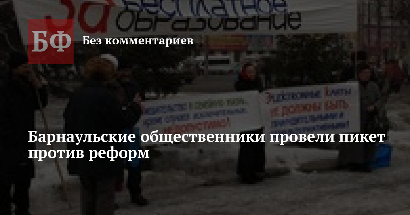 Пикет против реализуемых в стране бюджетных реформ состоялся в Барнауле 23 марта в рамках Всероссийского социального марша регионов. Организатором мероприятия выступило гражданское движение «Алтайская инициатива за бесплатное образование». В нем также участвовали члены АКОО «Алтайский родительский комитет». Планировалось, что акцию поддержат до 70 человек, но к зданию КРК «Мир» вышло всего около 10 активистов.