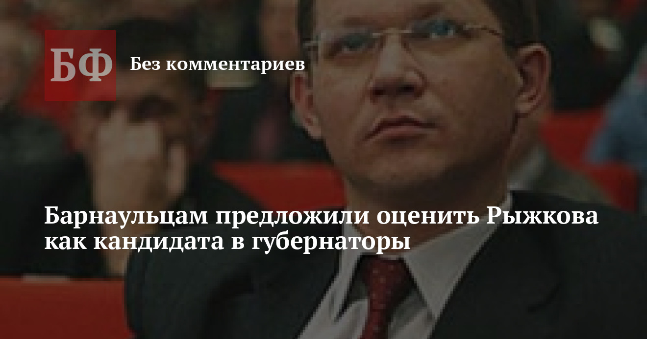 В группе «Алтай Online» соцсети «ВКонтакте» был опубликован видео-опрос жителей Барнаула о том, готовы ли горожане на предстоящих выборах губернатора проголосовать за политика Владимира Рыжкова. Авторы материала решили расспросить потенциальных избирателей в связи с заявлением сопредседателя партии «РПР-ПАРНАС» Михаила Касьянова, считающего, что г-н Рыжков должен участвовать в предвыборной гонке за пост главы Алтайского края. Примечательно, что опрос жителей региона насчет других кандидатур не публиковался.