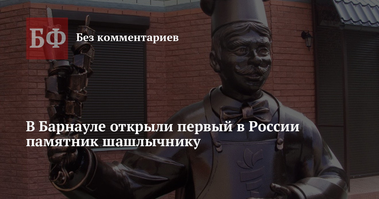 Металлический шашлычник высотой 2,4 м появился 11 июня в Ленинском районе Барнаула. В России таких памятников еще не возводили — ближайший «сосед» барнаульского шашлычника расположен в Донецкой области на Украине. Идея принадлежит ГК «Альтаир-Агро», которая изначально намеревалась разместить скульптуру на проспектах Ленина или Красноармейском, однако городские чиновники не сочли это возможным.