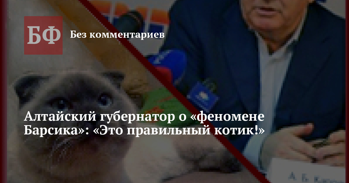 Губернатор Алтайского края Александр Карлин прокомментировал так называемый «феномен Барсика». В ходе общения с журналистами «Сибирской медиагруппы» 11 декабря глава региона предположил, что, активно голосуя за кота, пользователи Интернета пытаются транслировать определенные пожелания будущему руководителю Барнаула. По признанию Карлина, «кандидат Барсик» ему симпатичен. «Ведь котик-то правильный! Это наш котик!» — заявил губернатор.