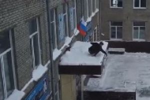 Похожий на ученика молодой человек решился на опасную вылазку, чтобы подготовить барнаульскую школу № 53 к визиту российского премьер-министра.