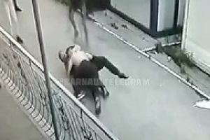 Сотрудники ЧОП приехали на вызов по тревоге, и, как видно на ролике, мужчина с голым торсом вступил с одним из охранников в рукопашную, а второй в это время ходил рядом. Силы были неравны, и охранник оказался на асфальте, где по нему обрушился град ударов.