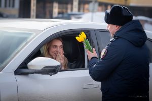 Сотрудники Госавтоинспекции Барнаула провели акцию «Автоледи» и поздравили женщин с наступающим Международным женским днем.
