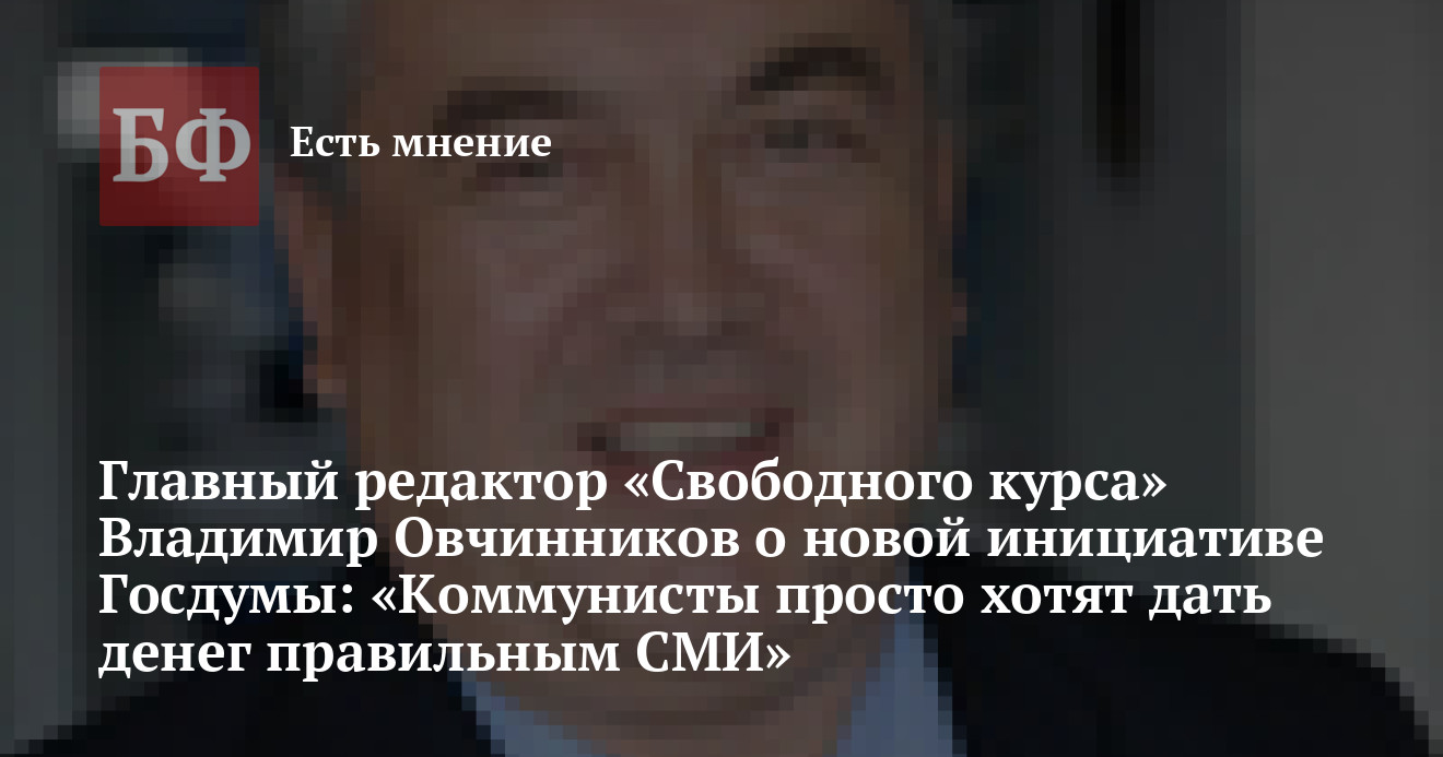 Само понятие «социально ориентированное СМИ» вызвало много споров в отрасли — кто может попасть под эту размытую формулировку? И не вернется ли медиарынок с советским временам, когда доверие к прессе было минимальным? Об этом порталу «Планета СМИ» рассказал главный редактор газеты «Свободный курс» Владимир Овчинников. Его мнение ИА «Банкфакс» публикует с незначительными сокращениями.