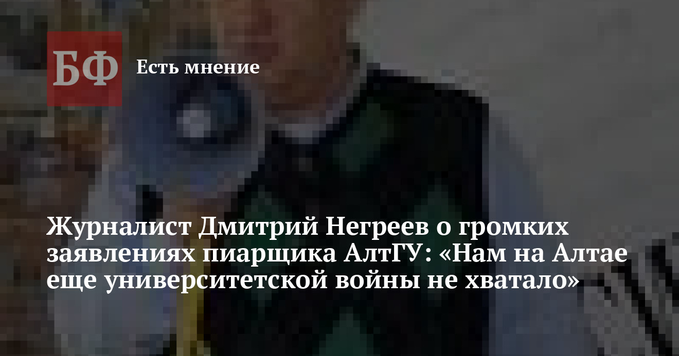 Итак, налицо попытка развязать информационную войну между вузами. Не думаю, что за этим стоит непосредственное руководство Дмитрия Марьина. Ректор АлтГУ Сергей Землюков — человек осторожный и не сторонник таких действий. Допускаю даже, что он ничего об этом не знает — в Facebook не замечен. А если узнает, то, скорее всего, спасибо не скажет. В сложной экономической (кризис) и политической (выборы федерального и краевого парламентов) ситуации нам на Алтае еще университетской войны не хватало.
