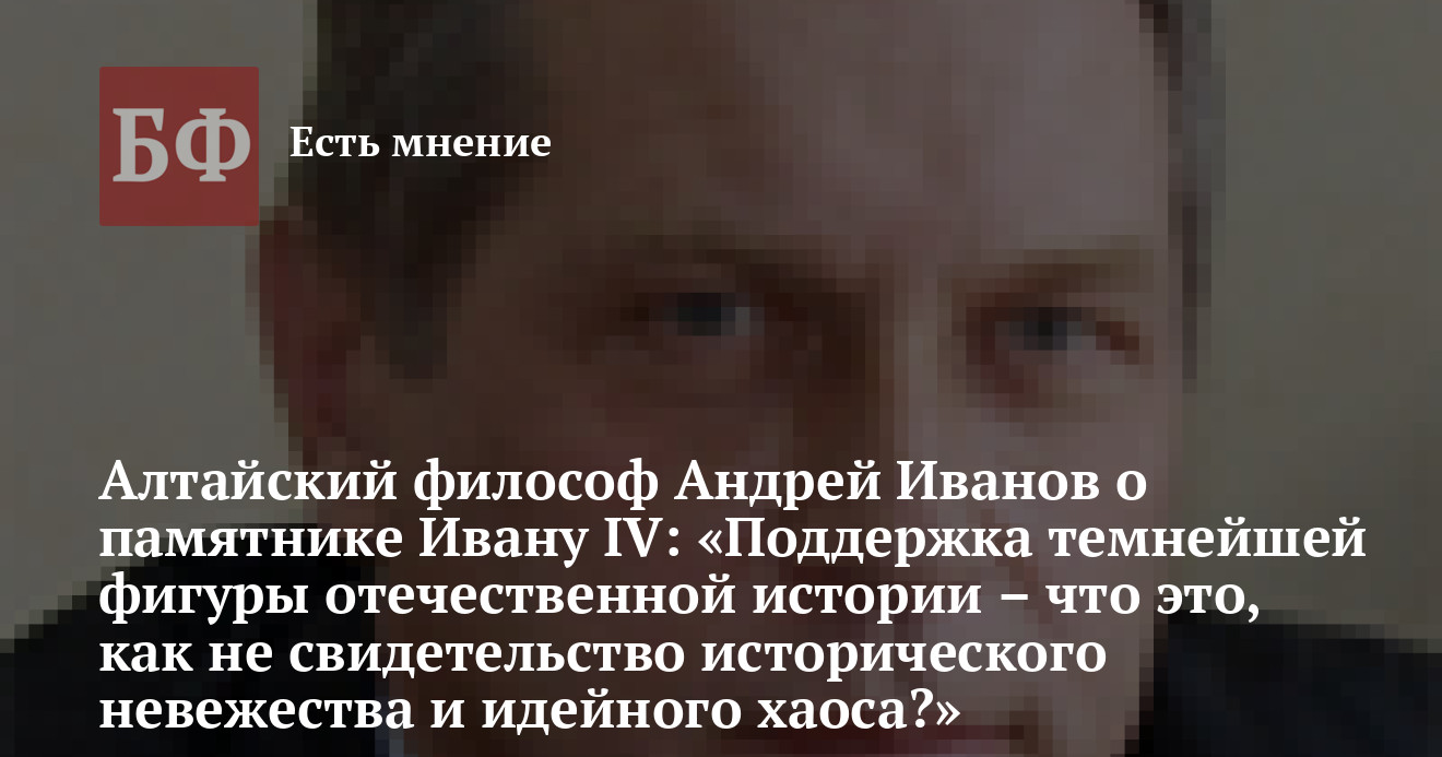title="Алтайский философ Андрей Иванов о памятнике Ивану IV: «Поддержка темнейшей фигуры отечественной истории — что это, как не свидетельство исторического невежества и идейного хаоса?»"