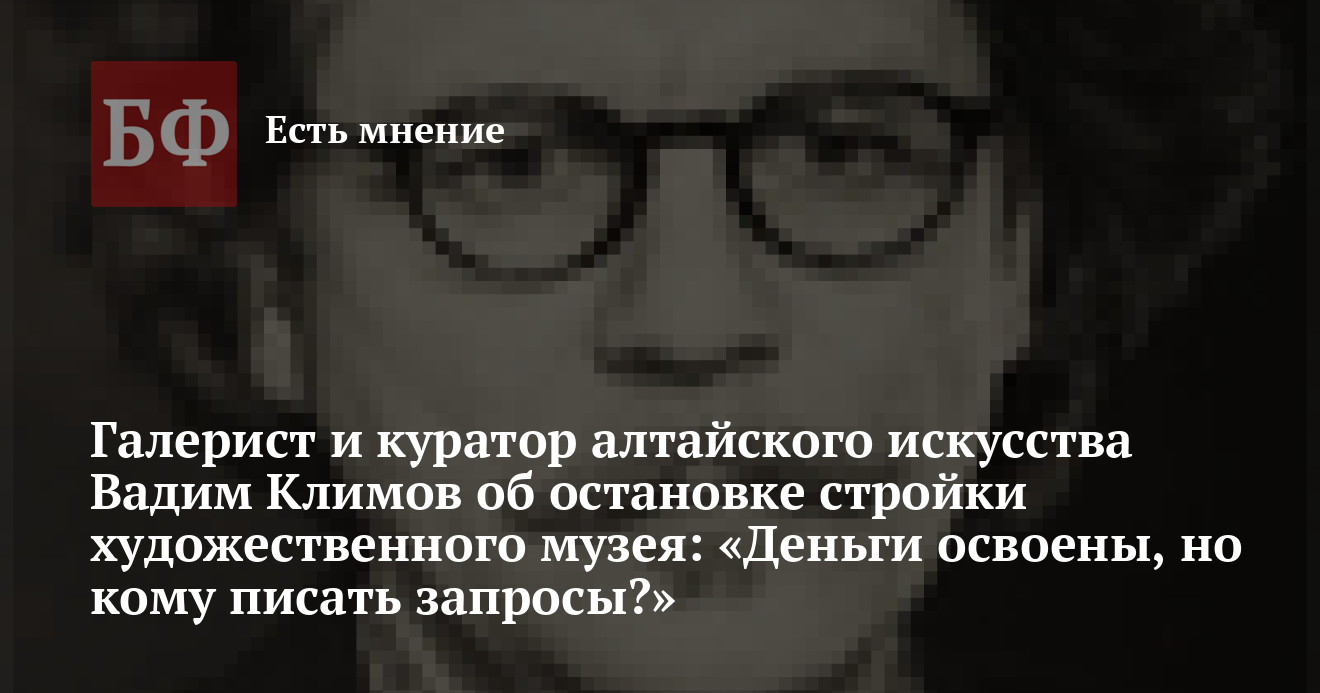 title="Галерист и куратор алтайского искусства Вадим Климов об остановке стройки художественного музея: «Деньги освоены, но кому писать запросы?»"