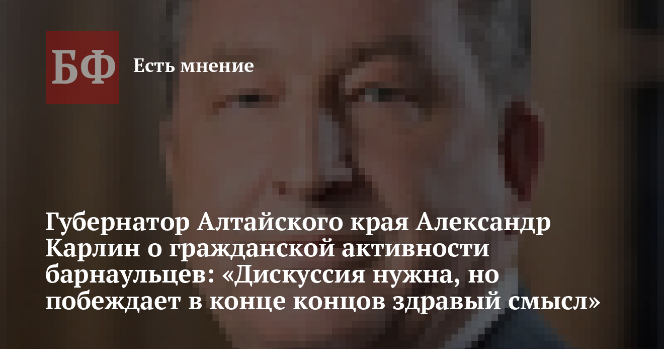 title="Губернатор Алтайского края Александр Карлин о гражданской активности барнаульцев: «Дискуссия нужна, но побеждает в конце концов здравый смысл»"