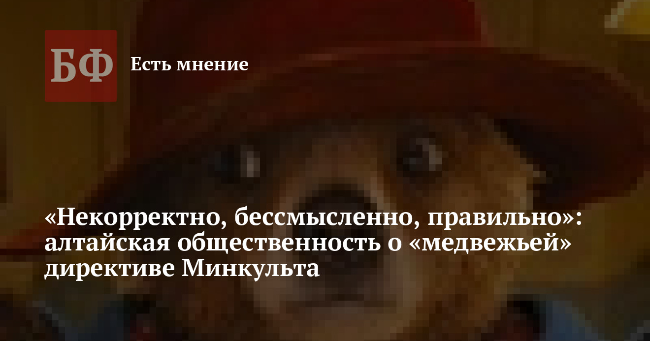 title=""Некорректно, бессмысленно, правильно": алтайская общественность о «медвежьей» директиве Минкульта"